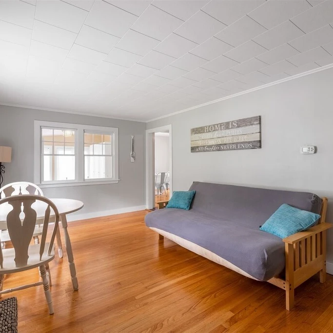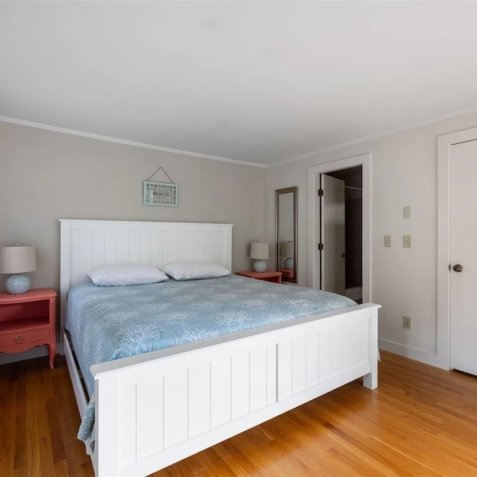 This cottage features 3 bedrooms, 2 bathrooms, and sleeps up to 7 guests. The open living room offers forest views through sliding doors. The master bedroom has a king bed and en suite bathroom. Kitchen equipped with essentials. Located an 8-minute walk from downtown and a 15-minute walk to the beach, it's ideal for family or friend getaways. Outdoor area includes a deck and space for 3 vehicles. Internet available. Beach essentials provided.