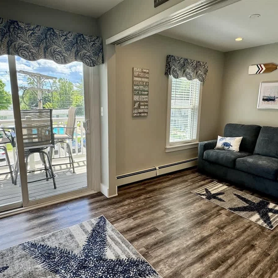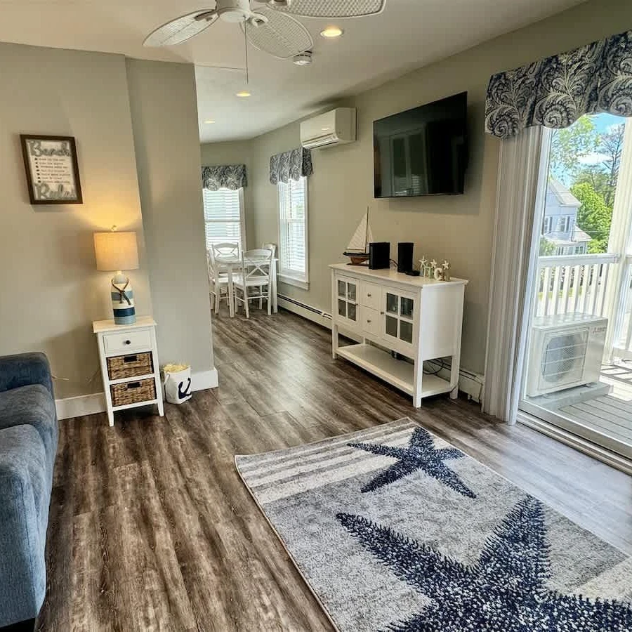 This beautifully updated 1-bedroom condo in Ogunquit features beach-themed decor, modern furnishings, and outdoor dining space. Enjoy a prime location between Perkins Cove and Ogunquit Beach, with easy access to Marginal Way and local attractions. The unit can comfortably accommodate up to 5 guests and offers convenient amenities including a kitchen and swimming pool.