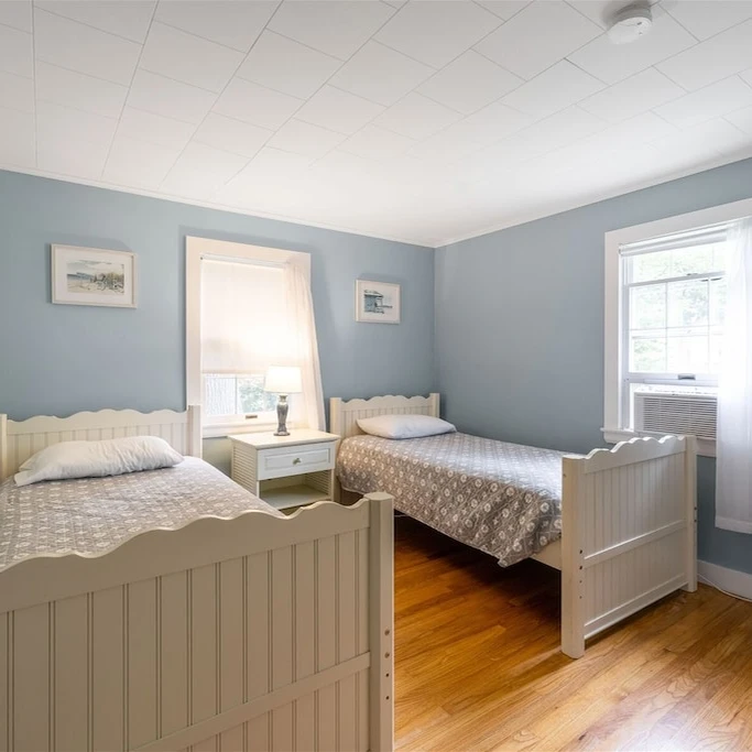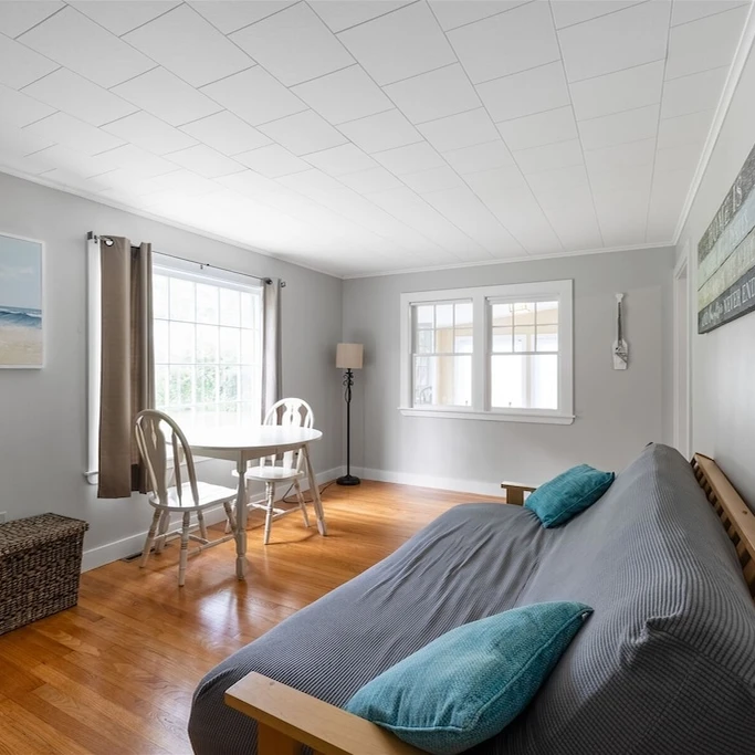 This cottage features 3 bedrooms, 2 bathrooms, and sleeps up to 7 guests. The open living room offers forest views through sliding doors. The master bedroom has a king bed and en suite bathroom. Kitchen equipped with essentials. Located an 8-minute walk from downtown and a 15-minute walk to the beach, it's ideal for family or friend getaways. Outdoor area includes a deck and space for 3 vehicles. Internet available. Beach essentials provided.