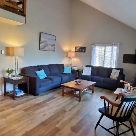 This two-story home features a private neighborhood setting, located midway between Main and Footbridge Beaches. Enjoy easy access to the beach via sidewalks and trolley stops. The home includes a first-floor bedroom, outdoor shower, and amenities such as an expansive outdoor deck for barbecues, parking for four cars, and room for kayaks. Accommodations include three bedrooms, two full bathrooms, and various kitchen and entertainment amenities.
