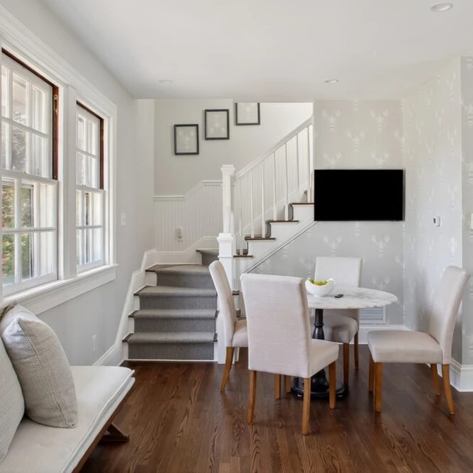 This elegant turn-of-the-century 4,000 square foot home offers privacy on over 2 acres, with porches and private decks from the master bedroom and guest suite. Located near Ogunquit and Cape Neddick, the property provides access to local beaches and outdoor activities, including a nearby cliff walk. The house has 5 bedrooms and 4 bathrooms, accommodating family gatherings in comfort. Amenities include a kitchen, spacious yard, parking for 6 vehicles, and central air conditioning. Pets allowed with approval.
